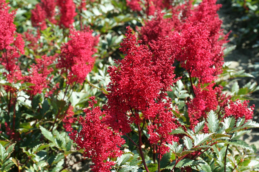 Рассада астильбы Арендса Этна (Etna) вырастают в оригинальные растения с посеченными темно-зелеными листьями и ажурными красными соцветиями ромбовидной формы. Отдельные цветки очень мелкие, и неразличимы на расстоянии. Побеги с соцветиями напоминают ажурные метелки длиной до 25 см. Цветение начинается во второй половине лета и длится до 40 дней. Растения сажают группами. Максимальная высота – 60 см. Хорошо размножается семенами. Верхние побеги отмирают к зиме, весной от корневищ формируются новые почки. Перед заморозками растение желательно присыпать землей и укрывать. Особенности посадки астильбы Этна: