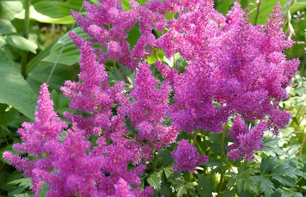 Рассада астильбы китайской Пумила (Pumila) вырастает в строгое, но привлекательное растение, характерное своей декоративной блестящей листвой и множеством воздушных сиреневых цветков на длинных черешках. Темные бутоны слегка бледнеют после распускания. Длина соцветий 20-25 см. Листва очень густая и расположена низко от земли.