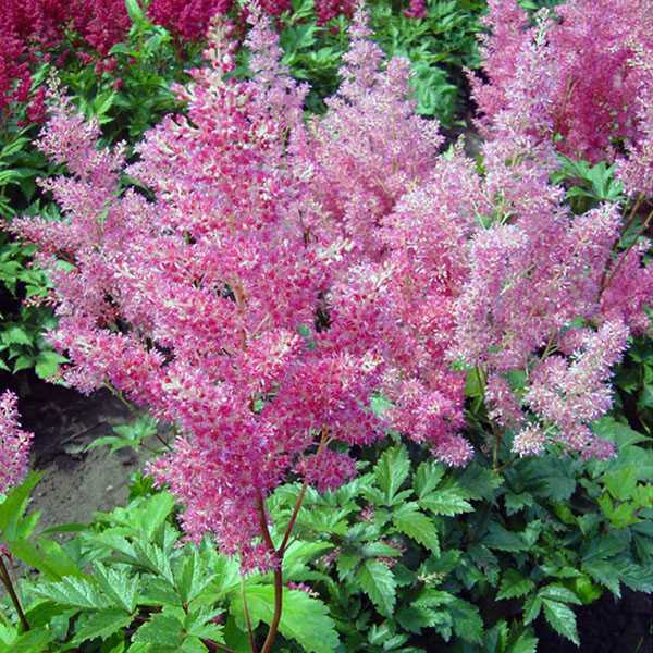 Рассада астильбы "Майнц" (Mainz) имеет ветвистые, тонкие стебли, на которых поочередно располагаются мелкие простые листья темно-зеленого цвета. Цветение происходит в июне и длится до июля. Цветки небольшие, до 1 см в диаметре, простые, насыщенно-розового цвета. Они собраны в шикарные, крупные и пушистые соцветия-метелки (до 30 см в длину). Рассаду астильбы "Майнц" высаживают исключительно на полутенистых или тенистых участках, где нет прямых солнечных лучей. Участки выбирают с плодородной, нейтральной или слабокислой, питательной, взрыхленной почвой.