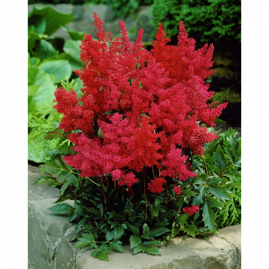 Рассада астильбы японской Монтгомери (Montgomery) украсит ваш цветник ярко-красными пышными соцветиями с мелкими ажурными цветами, которые просто не могут остаться незамеченными. Цветы появятся во второй половине июля, но благодаря резной форме листьев и насыщенному цвету астильба Монтгомери будет украшать участок и после цветения, и до появления бутонов. Весной у листьев появляется красновато-бурый оттенок. Семена хорошо приживаются на влажных удобрённых почвах, высевают их весной, предварительно проведя стратификацию. Растение не переносит засуху и требует обильного полива в жаркие дни. В высоту может достигать 70 см, при этом высота соцветия может быть 17-20 см.