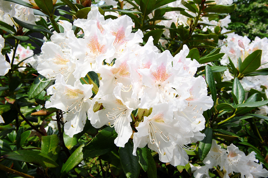 Азалия японская эйспринцессин - это изысканное растение с белыми цветками, которое поражает своей красотой и изяществом. Ее ствол прочный, а размеры достигают до 50 см в высоту, что делает ее идеальным украшением для вашего сада. Листья азалии имеют зеленую окраску как летом, так и осенью, создавая яркий контраст с белыми цветками.