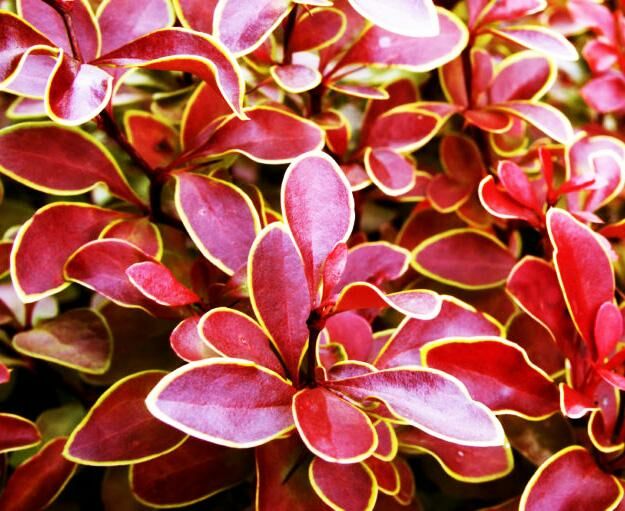 - листва – темно-красные листья с зеленоватой каймой;