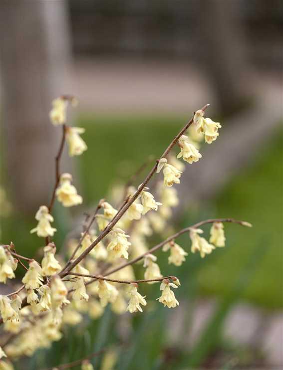 Саженцы Корилопсиса малоцветкового (Corylopsis pauciflora) – карликового густоветвистого кустарник, с тонкими веточками, благодаря чему выглядит декоративно. Листья, пока молодые имеют пурпунрый оттенок, а вот позже становятся зелеными. А вот цветы появляются рано (в начале весны) и представлены в виде колокольчиков желтовато-кремового цвета, которые опущены вниз.