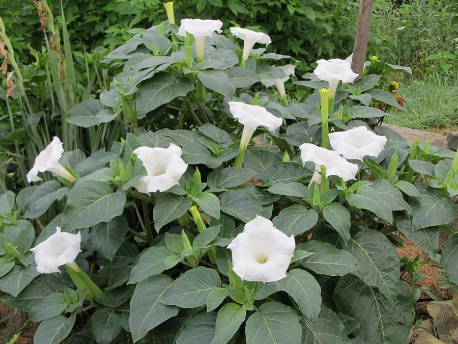 Семена дурмана «Белый» высевают в горшки с марта по апрель. Первые всходы появляются через две-три недели. В конце мая рассаду дурмана «Белый» высаживают в открытую почву. Место для высадки выбирают солнечное и защищенное от ветров. Цветет однолетник с июля до середины августа. Цветы крупны и подняты вверх. Имеют белоснежный окрас. Высота растения варьируется от 70 см до 1 метра. Сорт семян дурмана «Белый» используют для создания высоких одиночных и групповых цветников, оформления рабаток, беседок, патио. Все части растения ядовиты, поэтому после прикасания к нему необходимо тщательно мыть руки.