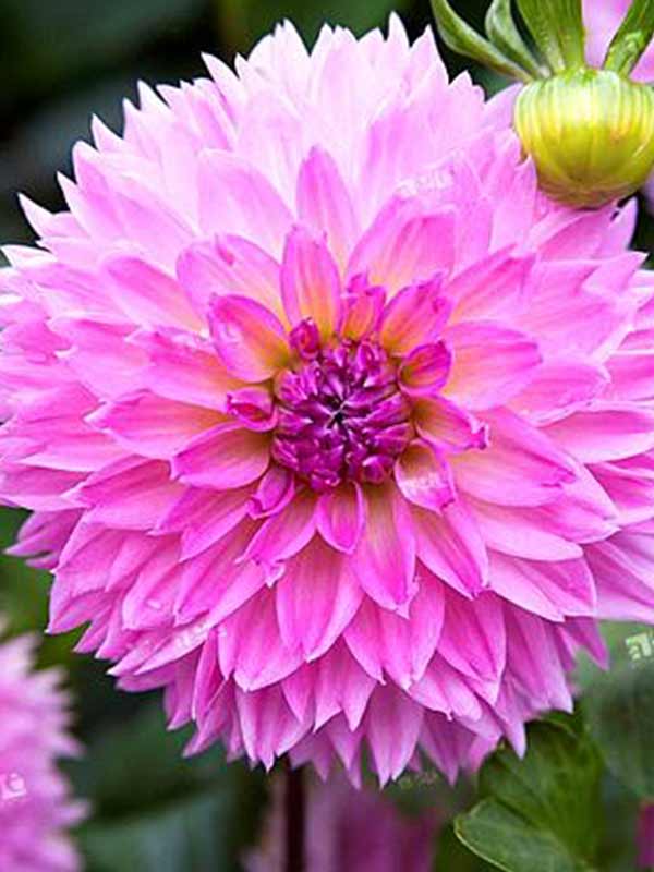Луковицы георгины махровой Сакура Фубуки (Dáhlia variabilis Sakura Fubuki), выведенной в Японии, пользуются устойчивым спросом у цветоводов. С июля по сентябрь — восточная гармония и утонченность в вашем саду. Удивительный цветок как будто светится изнутри, его окраска напоминает цветение сакуры. Продолговатые розово-сиреневые лепестки собраны в пушистые шапочки, а в нежно-желтом центре цветка будто спрятано солнце. Диаметр цветочной корзинки — 10-15 сантиметров. Высота куста — до одного метра. Стебли крепкие, не требуют опоры. Важно, чтобы место посадки хорошо освещалось солнцем и было защищено от холодных ветров.
