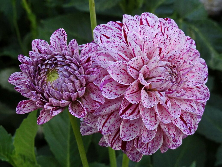 Георгина шаровидная марбл болл - это великолепное растение с бордовыми цветками, украшенными белым меланжем. Ее стебель прочный и прямой, достигает высоты до 90 см. Листья георгины имеют интересную форму и яркий зеленый оттенок, что делает растение еще более привлекательным.