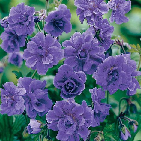 Рассада сорта Герань гималайская Пленум (Plenum) – травянистый многолетний сорт, который подойдет для выращивания на солнечных участках. Стеблей у растения немного, они прямостоячие и довольно разветвленные. Листья, как правило, располагаются у корней, имеют округлую форму и покрыты короткими волосками. Цветы большого размера, они махровой текстуры сиреневатого оттенка, они собраны в соцветия и появляются во второй половине июня. Герань рекомендуется размещать на солнечном участке, на почве с умеренным увлажнением, глинистой и питательной. Используют сорт Пленум для живых травянистых бордюров, в оформлении ландшафта под кроной деревьев или для ковровых насаждений.