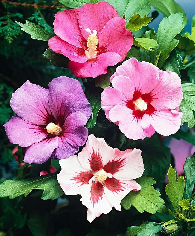 Саженцы гибискуса сирийского Mix позволят вырастить в саду яркие цветы разного оттенка. Это отличный вариант для создания декоративных ограждений, смешанных композиций, украшения зон отдыха. Высота взрослого кустарника достигает 65 сантиметров. Цветение начинается в июне и длится до конца лета.