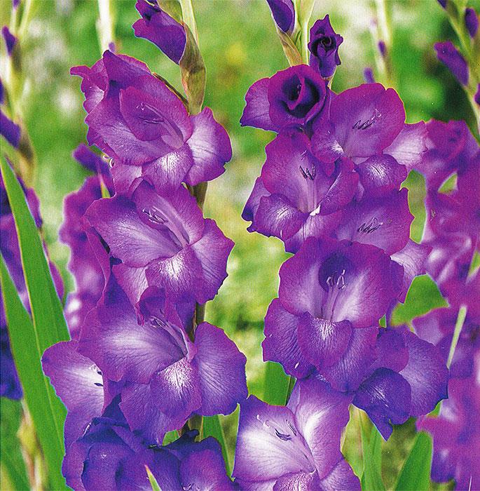 Луковицы гладиолуса гибридного Purple Flora лучше всего растут в почве с богатым содержанием гумуса. Место рекомендуют выбирать солнечное или слегка притененное, защищенное от сквозняков, без застоя влаги. Цветок вырастает до 120-150 см в высоту. Период цветения наступает в конце июня. Цветки темно-фиолетовые, красиво переливаются на солнце. Они собраны в одностороннее колосовидное соцветие по два ряда. Одновременно распускается от 6 до 8 цветочков. Цветет гладиолус гибридный Purple Flora до сентября.