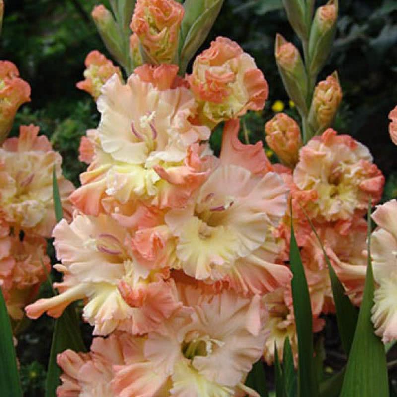 Гладиолус гофрированный "Румба Раффл" - это великолепное растение, которое поразит вас своей красотой и изысканностью. Его лососево-розовые цветы с жёлтым оттенком создадут неповторимый акцент в вашем саду или огороде. Стебли этого гладиолуса прочные и устойчивые, что делает его идеальным для срезки и создания букетов.