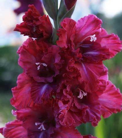 Гладиолус гофрированный Шеридан Раффл - это великолепное растение, которое поразит вас своей красотой и изысканностью. Его яркие малиновые цветы с лиловым пятном на нижних лепестках привлекут внимание всех окружающих. Стебель гладиолуса прочный и прямой, достигает впечатляющей высоты, что делает его идеальным для создания живописных цветочных композиций в вашем саду.