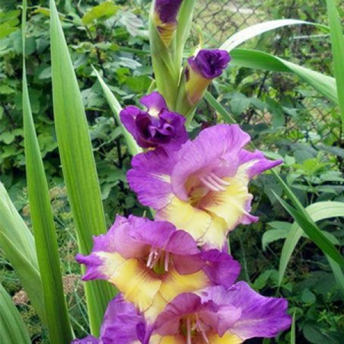Гладиолус крупноцветковый "Динамит" - это настоящий взрыв красок и энергии в вашем саду! Стебли этого растения достигают высоты до 110 см, украшенные крупными цветками пурпурного цвета с ярким жёлтым пятном. Листья гладиолуса имеют форму меча, что придает растению особый шарм и изящество.