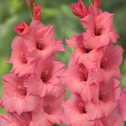 Гладиолус крупноцветковый Фортароза - это великолепное растение с изысканными розовыми цветками, которые украсят ваш сад в июле, августе и сентябре. Высота этого гладиолуса может достигать от 80 до 150 см, что делает его заметным элементом в любом саду. Листья зеленого цвета создают прекрасный контраст с яркими цветками, придавая растению особый шарм.