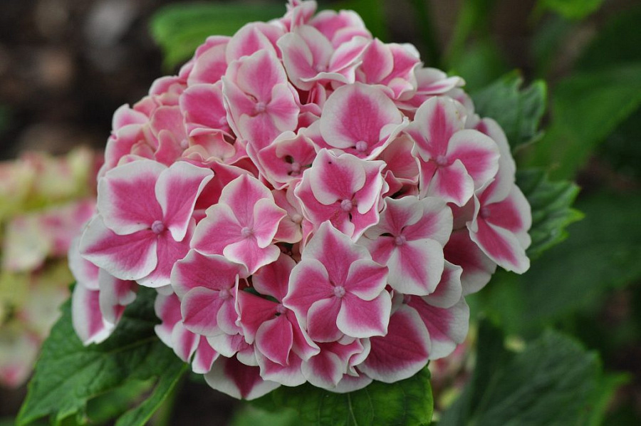 Гортензия крупнолистовая Tivoli - это великолепное растение с изысканными розовыми цветками, украшенными белой каймой. Ее ярко-зеленые листья создают удивительный контраст и придают саду особый шарм. Это растение отличается высокой морозостойкостью и легкостью в уходе.
