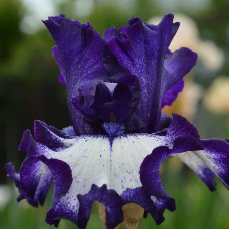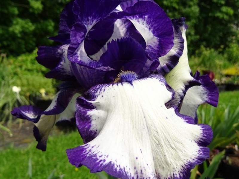 Окраска цветка : тёмно-синий, нижние лепестки белые с тёмно-синей каймой