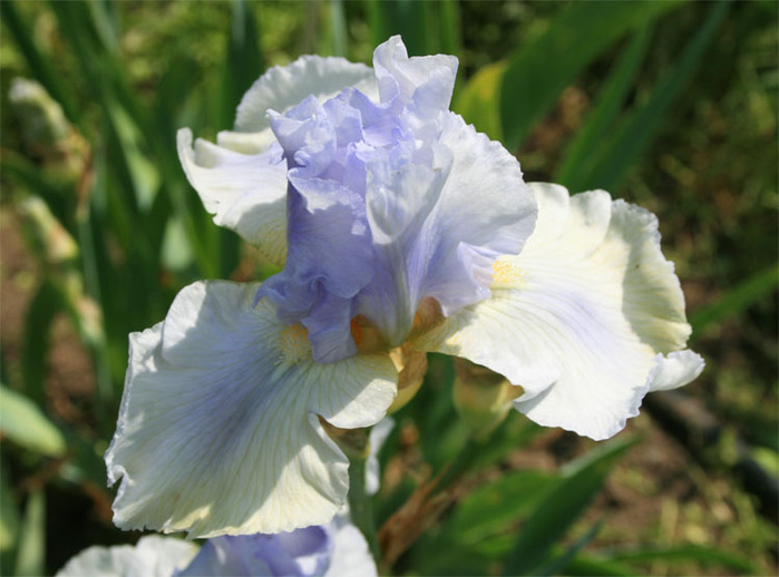 Рассада Ириса Херс (Hers) отлично подходит для оформления клумб со среднерослыми декоративными растениями. В начале июня на крепких стеблях распускаются пышные, крупные бутоны, испаряющие волшебный, нежный аромат. Нижние лепестки цветка кремово-белые, верхние светло-фиолетовые, бородка жёлтая. Уже в начале августа можно собрать семена ириса Херс. Растение предпочитает солнечные, защищённые от порывов ветра места. Укрывать или выкапывать корни на зиму не нужно, ведь культура характеризуется отличной морозостойкостью. А вот засухи не любит, поэтому летом, особенно в период цветения, нужно обеспечить цветкам полив.