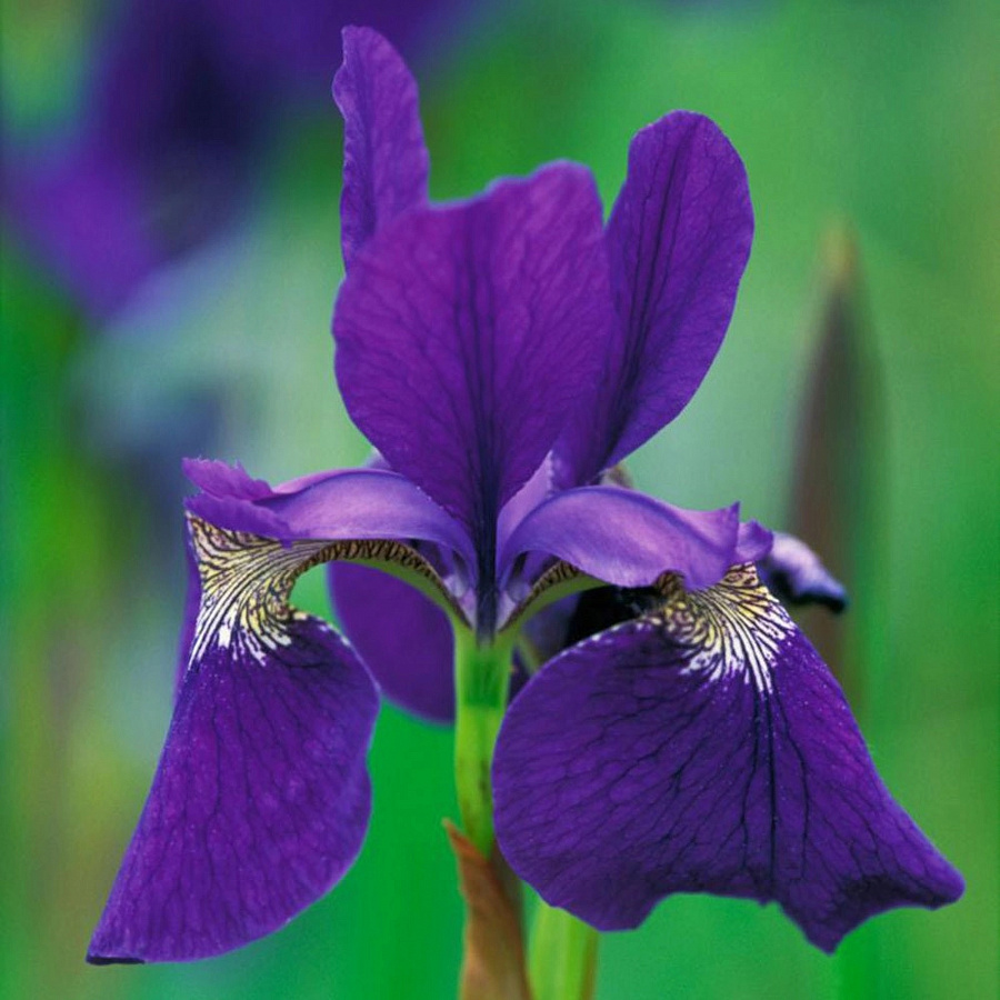 Луковицы ириса сибирского Цезарс Бразе весной выпускают большое количество темно-зеленых, узких, поникающих листьев, которые рекомендуется срезать после отцветания растения. Цветение начинается в мае, когда на цветоносах появляются яркие, слегка гофрированные цветы с насыщенным сине-фиолетовым оттенком. Основание нижнего лепестка эффектно дополнено кремово-белыми штрихами. Диаметр полностью открытого цветка составляет около 10 сантиметров. Цезарс Бразе отлично будет расти на открытом солнечном участке при достаточной влажности грунта. Растение неприхотливо и отлично переносит морозные зимы.