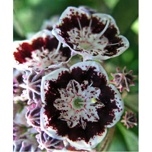 Окраска цветка : белые с т-коричневым, почти черным кольцом и с белой каймой
