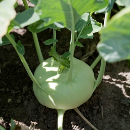 - хорошо переносит заморозки. Плоско-округлой формы, белые стеблеплоды капусты кольраби Терек обладают высокой однородностью. Средняя масса – 0,5-1,3 кг. Светлая мякоть нежная, сочная, не острая. Используют для приготовления салатных смесей, овощных супов, рагу и прочего. Семена капусты кольраби Терек можно получить из взрослого растения на второй год жизни, когда оно уже способно давать цветоносные побеги.