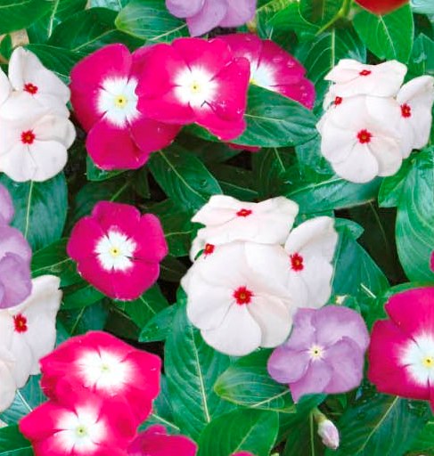 Растение катарантус пацифика микс - это настоящий красавец среди садовых цветов. Его стебель прочный, листья формы овала создают уникальный визуальный образ. Высота этого растения может достигать до 25 см, что делает его идеальным для групповых посадок. Цветки катарантуса пацифика микс имеют разнообразную окраску, размером до 4 см, что придает вашему саду неповторимый вид в течение всего цветения с 1 по 7 месяц.