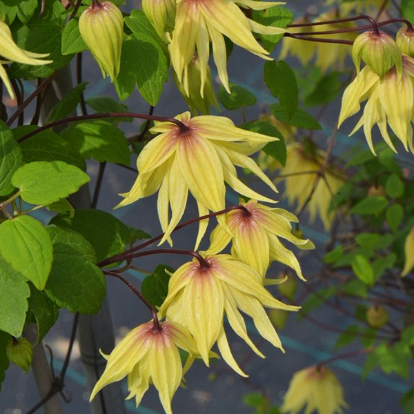 Саженцы Клематиса гибридного Golden Dream (Clematis) лучше всего высаживать на солнечное место с плодородным грунтом. Растение не переносит сильной жары. В высоту достигает 3 метров. Если выращивать вертикально, необходима опора. В ином случае растение будет развиваться как почвопокровное. Сорт Голден Дрим цветет долго, с мая по июнь месяц. В этот период лиана покрывается поникающими махровыми цветками лимонно-желтого цвета. Примечательно, что от цветков исходит приятный грейпфрутовый аромат. Растение широко используется для оформления арок, ограждений, садовых построек. Хорошо смотрится рядом с хвойными и лиственными растениями.