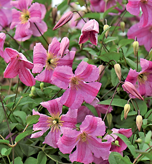 Саженцы клематиса гибридного Краковяк (Krakowiak) предпочитают солнечные, защищенные от ветра места с суглинистой, плодородной почвой. Цветение начинается с середины июня и продолжается до сентября. Цветки светло-розовые с темно-розовой полосой посередине лепестка. Клематису гибридному Краковяк (Krakowiak) для роста и развития необходима опора, так как дина побегов достигает 300 см., в противном случае растет как почвопокровное растение. Подходит для вертикального озеленения не только на приусадебных и дачных участках, но и в городских условиях.