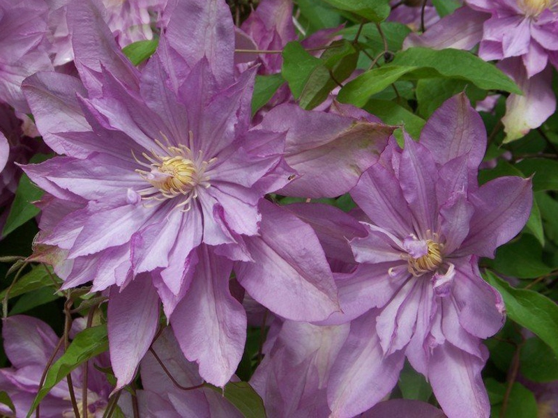 Саженцы клематиса гибридного Рагамаффин (Ragamuffin) относятся к группе крупноцветковых и раннецветущих клематисов, характеризуются умеренным ростом и обильным цветением. В высоту растение достигает 100-150 см. Цветет махровыми цветками с мая по июль на побегах прошлого года, после летней обрезки в августе - сентябре зацветает повторно простыми цветками. Окрас цветка малиново-розовый со светлым краем. Клематис гибридный Рагамаффин (Ragamuffin) хорошо растет и обильно цветет на солнечных или слегка затененных участках с плодородной почвой. Декоративная лиана применяется при создании многоярусных садовых композиций.