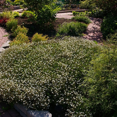 Саженцы Лапчатки трёхзубчатой Нуук (Nuuk) – это олицетворение чувственной нежности белоснежных облаков. Вечнозелёный кустарник станет центром внимания на вашем садовом участке. Густые кроны разрастаются в ширину на 50 см, а в высоту около всего лишь на 20 см. Крупномер устойчив к зною летом и холоду зимой. Начинает цвести сорт Нуук в июне, а заканчивает к сентябрю. Белые цветки вырастают до 1 см в диаметре. Осенью кустарник облачается в насыщенные бронзовые и бордовые тона. Отличительные черты Нуук: