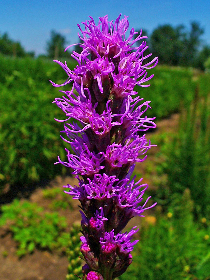 Лиатрис колосковый - это великолепное растение с изящными фиолетовыми цветками, которое поразит ваш взгляд своей красотой. Его стебель достигает высоты до 100 см, а диаметр цветка может достигать 50 см, создавая великолепный вид в вашем саду или огороде. Листья лиатриса колоскового имеют зеленую окраску и форму, которая придает растению особый шарм.