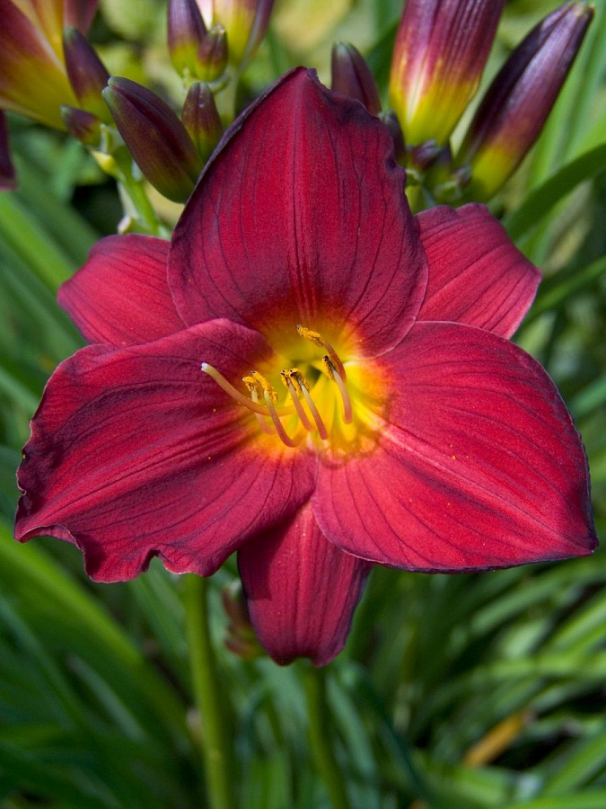 Окраска цветка : Красная с малиновым оттенком, желтое горло