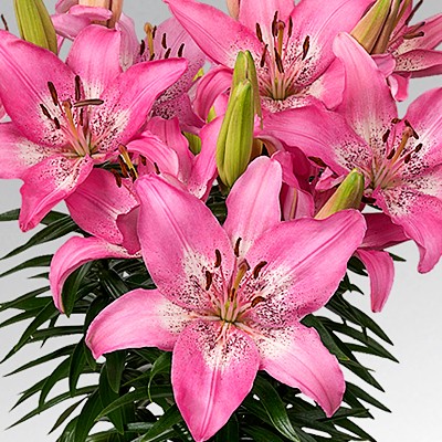 Лилия азиатская горшечная тренди никосия - это изысканное растение с карамельно-нежно-розовыми цветками, украшенными белым центром и бордовым крапом у сердца. Этот сорт лилии lilium asiatic поражает своей красотой и изяществом. Высота растения достигает 45-50 см, а размер цветка составляет 15 см. Лилия тренди никосия отличается морозостойкостью и подходит для выращивания в Московской области и большей части России (зона 4).