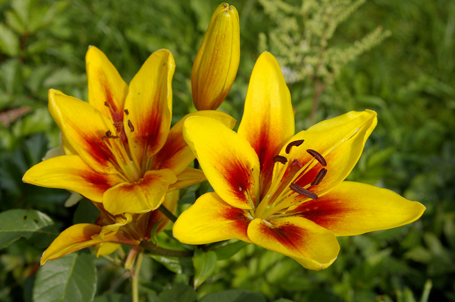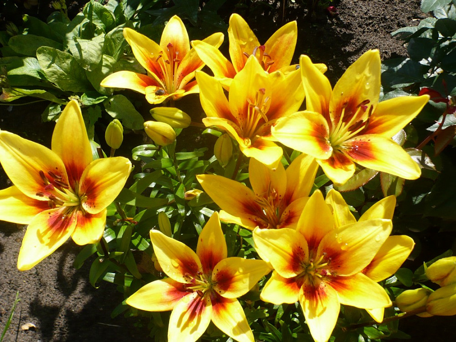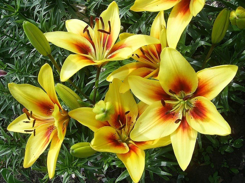 • Окраска цветка : желтые, с красно-коричневым основанием и пыльниками
