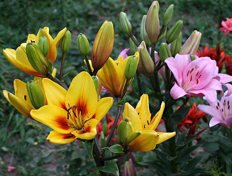 Луковицы лилии азиатской Гран Кру (Grand Cru) – впечатляющий сорт с огненными вспышками оранжево-желтых цветов. Красно-коричневые пыльники оставляют эффектные темные крапинки на роскошных длинных лепестках. Прочные длинные стебли по всей длине усеяны глянцевой зеленой листвой. Лепестки даже после раскрытия держат идеальную форму и слегка сгибаются внутрь.