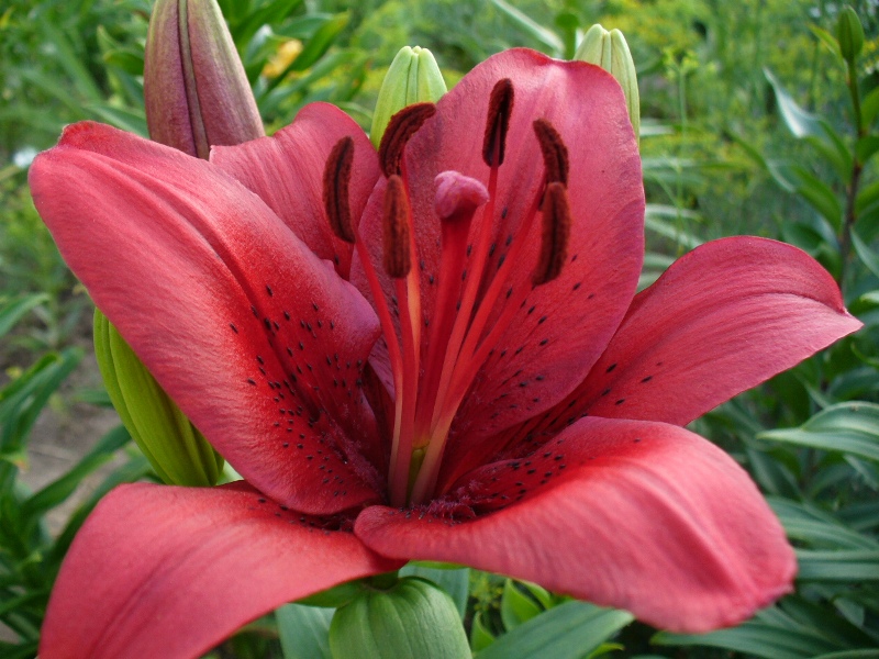 Окраска цветка : светло-рубиновая, с редким крапом у основания, цветок глянцевый