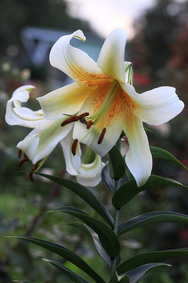 • Окраска цветка : белый с оранжево-персиковым центром и красным крапом