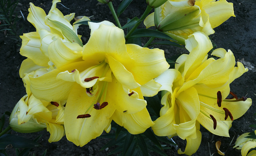 Лилия восточная махровая "Фифти Фифти" - это настоящая жемчужина среди садовых растений. Ее крупные, махровые цветки лимонного оттенка привлекают внимание и создают неповторимую атмосферу в любом саду. Высота растения может достигать 100-120 см, что делает его заметным элементом в ландшафтном дизайне.