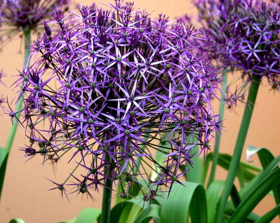 Луковицы лука Christophii принадлежат к декоративным сортам многолетников, которые используют в естественных посадках. Стебли 30-50 см в высоту и до 1,5 см диаметром, одиночные, прямостоячие, цилиндрические. Цветки многочисленные, 2-3 см диаметром, почти звездчатые, пурпурно-фиолетовые или розовато-лиловые с металлическим оттенком. Собираются по 30-80 штук в пучковато-шаровидные зонтики диаметром 10-20 см. Они радуют обильным и продолжительным цветением с мая до конца июня. Часто соцветия лука Christophii можно встретить в различных зимних букетах.