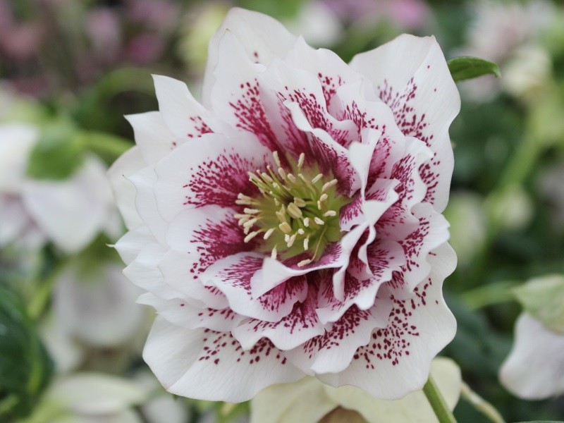 Рассада морозника восточного White spotted double относится к неприхотливым сортам. Но для достижения максимальной декоративности, растение следует высаживать на участках с рассеянной тенью и удобренной почвой, где нет застоя влаги. Растение вечнозеленое. Цвести начинает в самом начале весны – с апреля по май. Цветки удивительной расцветки: белоснежные лепестки усыпаны пурпурными крапинками. Бутоны махровые, крупные, очень красивые. Высота морозника восточного White spotted double варьируется от 70 до 90 сантиметров.