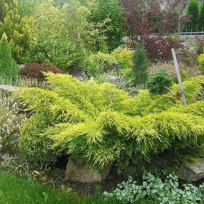 Саженцы можжевельника среднего Пфитцериана (Pfitzeriana) – этот нетребовательный сорт одинаково хорошо произрастает в почвах любого качества. Предпочитает солнечные места. Засухо- и морозостоек, хорошо акклиматизирован, учитывая, что родиной произрастания Пфитцериана является Северная Америка. Этот крупный и сильный кустарник, к сожалению, подвержен болезням и нуждается в регулярной профилактике. Особенности сорта: