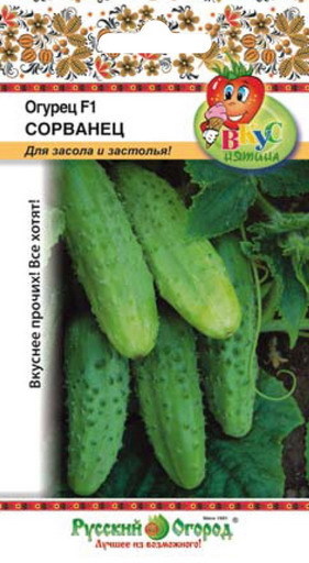 Семена огурцов "Сорванец F1" принадлежат к скороспелому сорт. Проходит всего 43-48 дней от всходов до плодоношения. Зеленец длиной 9-11 см, массой 80-100г, бугорчатый, зеленый с белыми полосами, черношипый, без горечи. Плоды обладают великолепными вкусовыми качествами, хрустящие, ароматные, плодов. Используют их для потребления в свежем виде и для консервации. Прочные корнишоны также прекрасно подойдут для бочкового посола, маринования. Семена огурцов "Сорванец F1" подходят для выращивания в открытом грунте и под временными пленочными укрытиями.