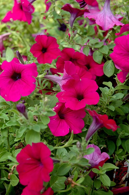 Листья петунии ампельной F1 Wave Purple Classic имеют ярко-зеленый оттенок, что прекрасно контрастирует с розовыми цветами. Это растение предпочитает солнечные места, поэтому выберите для него место с хорошим освещением. Частое поливание и опрыскивание помогут поддерживать здоровье петунии, а удобрения способствуют обильному цветению.
