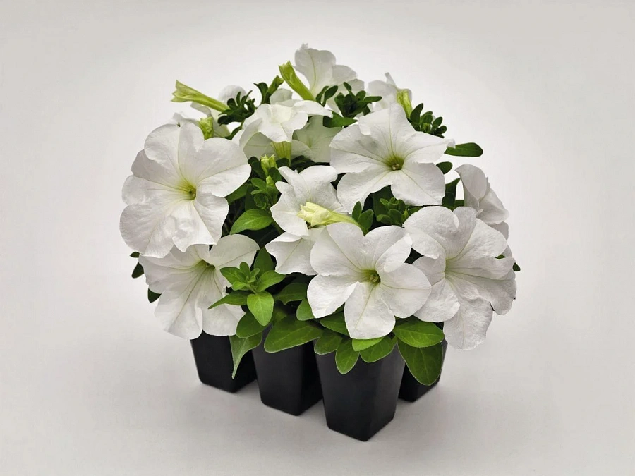 Петуния грандифлора саксесс 360° вайт - это воплощение нежности и изысканности в мире растений. Ее стебель, поднимающийся к вершинам, словно стремится к небесам, а размеры растения, достигающие 25-40 см в высоту и 8-10 см в диаметре, позволяют создать великолепные композиции в саду или на балконе. Листья петунии грандифлора саксесс 360° вайт обладают изящной формой, придающей растению особый шарм.