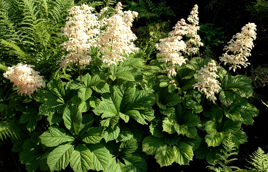 Роджерсия пластинчатая - это удивительное растение с бронзово-зелёной листвой, которое поражает своей красотой и изяществом. Ее стебель прочный и прямой, достигающий высоты до 90-120 см, что делает ее идеальным декоративным элементом для вашего сада или огорода. Листья роджерсии пластинчатой имеют необычную форму и размер - до 90 см, что придает растению особый шарм и привлекательность.