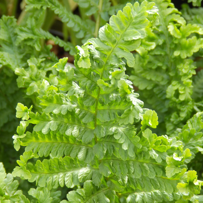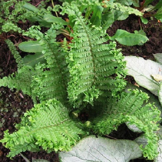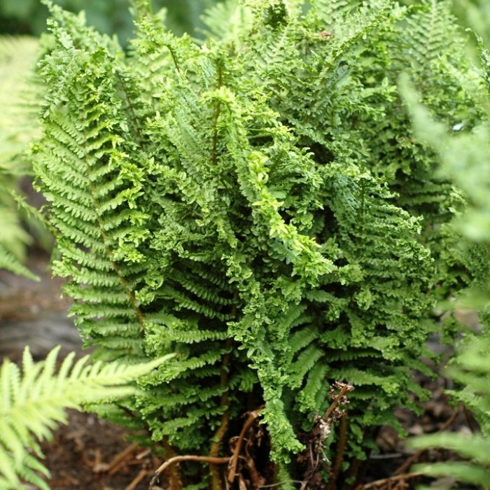 Щитовник мужской Crispa Cristata - растение от 50 до 150 см высотой с простым корневищем и зимующими листьями, собранными в плотные розетки.Листья длиной 20 - 80 см, продолговатые, темно-зеленые, с нижней стороны более светлые, перистосложные, глубокоперисторассеченные.Отдельные части сильно курчавые и обильно ветвящиеся. Издалека щитовник мужской Crispa Cristata напоминает крупный пучок петрушки. Главная особенность сорта — листья сохраняются на зиму и отмирают весной по мере отрастания молодых.Споры созревают в средней полосе в июле.  Рассада щитовника мужской Crispa Cristata предпочитает защищенное от солнца место, любит тень, но переносит рассеянный свет и легкую полутень. Хорошо себя чувствует на свежих гумусных почвах либо торфяниках.Морозостоек, но желательно укрытие листом или лапником .   Растение эффектно смотрится в групповой посадке под деревьями и среди кустарников,можно использоваь в одиночных посадках, у водоемов, на каменистых участках и склонах.