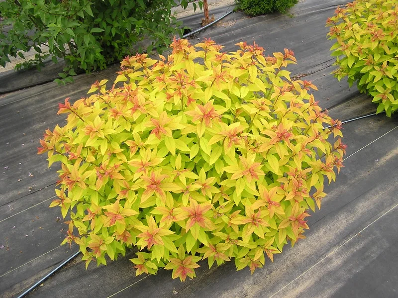 • годовой прирост – 10-15 см. Для размещения саженцев спиреи Голдфлейм следует выбрать солнечное место, укрытое от ветра. В тени необычный цвет листвы станет зеленым.