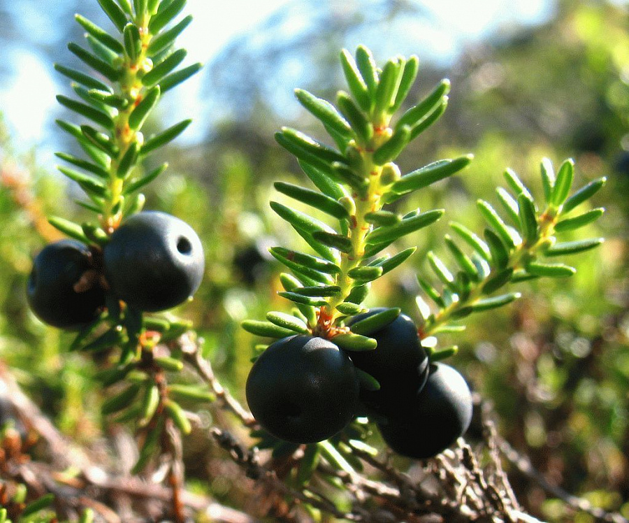 Семена отлично приживаются на заболоченных местах, отлично реагируют на торфяные удобрения. Плоды у водянки черной сизовато-черные шаровидной формы, с пурпурной мякотью и кисловатым вкусом. Кустарник отлично растет в местах с суровым зимним климатом.
