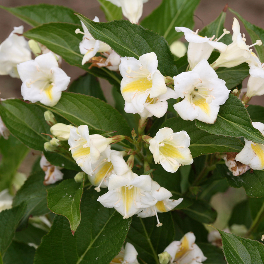 Саженцы Вейгелы цветущей SUNNY SIDE UP (Weigela florida) – щедро расцветает по весне большими белоснежными цветами, у которых ярко-желтая серединка. Листья кустарника темно-зеленые, красиво смотрятся в разное время года. Отличается удивительной устойчивостью, высотой и шириной обычно достигает до одного метра.