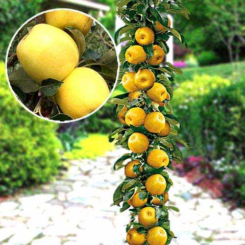 Саженцы яблони колоновидной Медок (Malus) ― это относительно молодой колоновидный сорт, был выведен в России в 1987 году. Относится к скороплодным и позднелетним, для плодоношения ему не требуется посадка рядом с другими яблонями. Первым урожаем можно будет насладиться через год-два. Яблоки созревают в конце августа-сентябре. При надлежащем уходе дерево регулярно будет приносить до 15 килограммов яблок. Сорт считается полукарликовым, его высота достигает 2,5 метра. Яблоки с массой до 250 граммов имеют округлую форму и плотную бело-желтую кожицу. Мякоть сладкая, с привкусом меда.